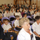 A Sportcsarnokban gyülekeztek az iskola tanárai, tanulói, a szülők és a vendégek. Külön izgalommal érkeztek az elsősök. Ők lesznek 25 fővel az iskola legnagyobb létszámú osztálya.