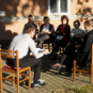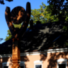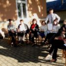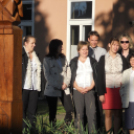 A jó időre való tekintettel - miközben a Szepessy-szalonban a tortalpátok kiállítás és a Desszert Ünnep előkészületei folytak - friss és langyos levegőn s természetes környezetben, a védett épület tövében örömmel állták körül a Bocz János által készített emblematikus alkotást, melynek új köntöst épp e helyi közösség tavasszal nyertes OTP Önkéntes Program keretében sikerült adni.