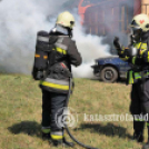 A veszélyes árut szállító tartálykocsiból sárga füst szivárgott, ide egy másik felderítő egység indult nehéz gázvédő ruhában. A szivárgás helyét rövid időn belül sikerült megtalálni és megszüntetni. A környezetbe került veszélyes anyag hígításához két, úgynevezett védősugár megszerelésére is szükség volt. Mindeközben a katasztrófavédelmi mobil labor állománya a helyszíntől távolabb méréseket végzett annak érdekében, hogy kiderítsék, lakott területet veszélyeztet-e a szivárgó veszélyes anyag. A mérések rámutattak arra, hogy a lakosságot nem fenyegeti veszély, így lakosságvédelmi intézkedések megtételére nem volt szükség.