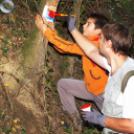 A Döbröközre tervezett turistautak jelzésfelújításán minden felnőtt és gyerek kivette a részét a munkában, így az egyik a festésben, még a másik a sablon tartásában segédkezett. A több mint 8 kilométeres táv felénél a csapat az erdőben tüzet rakott és közös ebédre került sor.