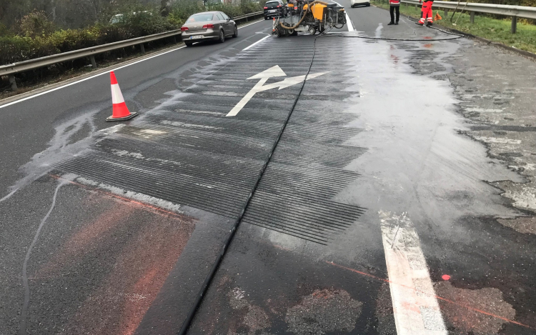 Ezért speciális gépekkel burkolati hézagvágást végeztek. Ez a grooving,így a vízfilmre érkező gumiabroncs alól a víz gyorsan ki tud térni, így megakadályozza a felúszást és a baleset kialakulását.
