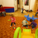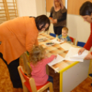 A kicsik szüleikkel érkeztek és nagyon hamar feloldódtak a számukra új környezetben. Mindenki kiválaszthatta leendő ovis jelét, amit kiszínezhetett és haza is vihetett. Először a tornaszobában játszottak, ismerkedtek a környezettel és egymással is. Ez sokuknak nem okozott gondot, hisz Baba-Mama Klubból már jól ismerték egymást. Az óvoda előtt ez az első szocializációs lépés a kicsik számára.
